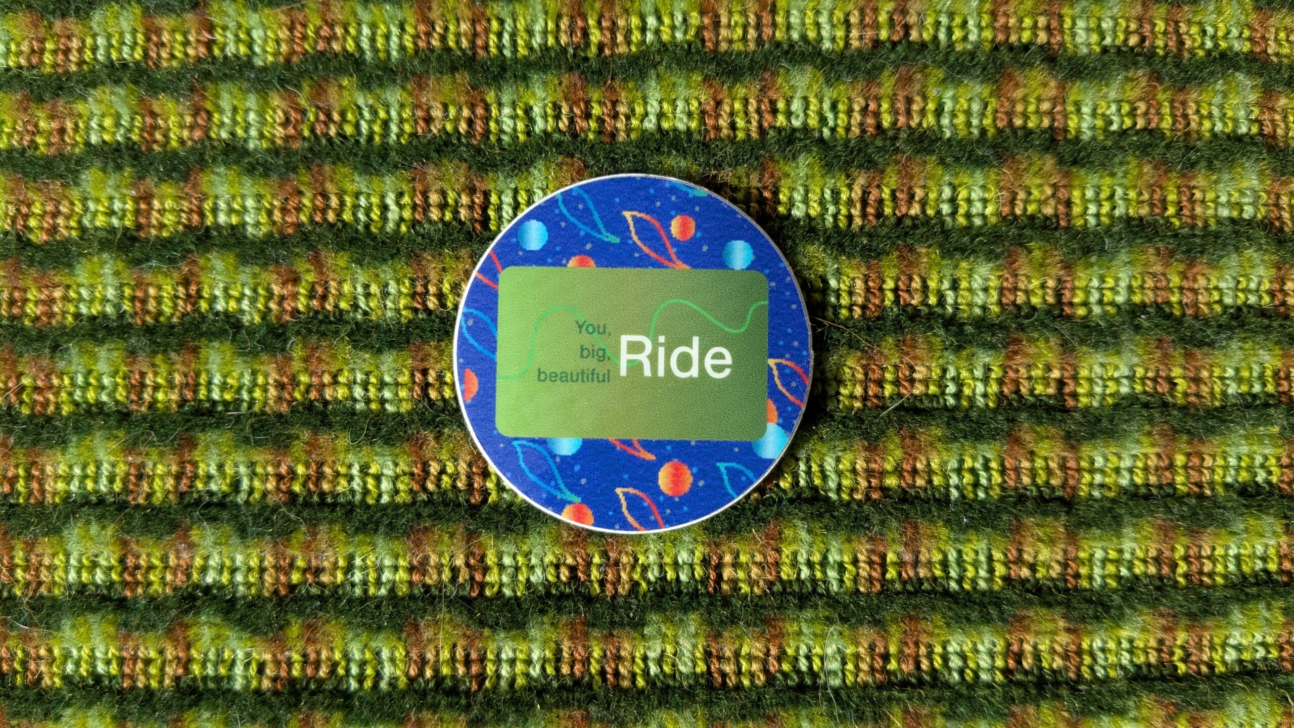 “You big beautiful ride” in the style of a travel card left on a Dublin Bus seat. Share it with your crush or show it off to all. This sticker is  40 mm × 40 mm