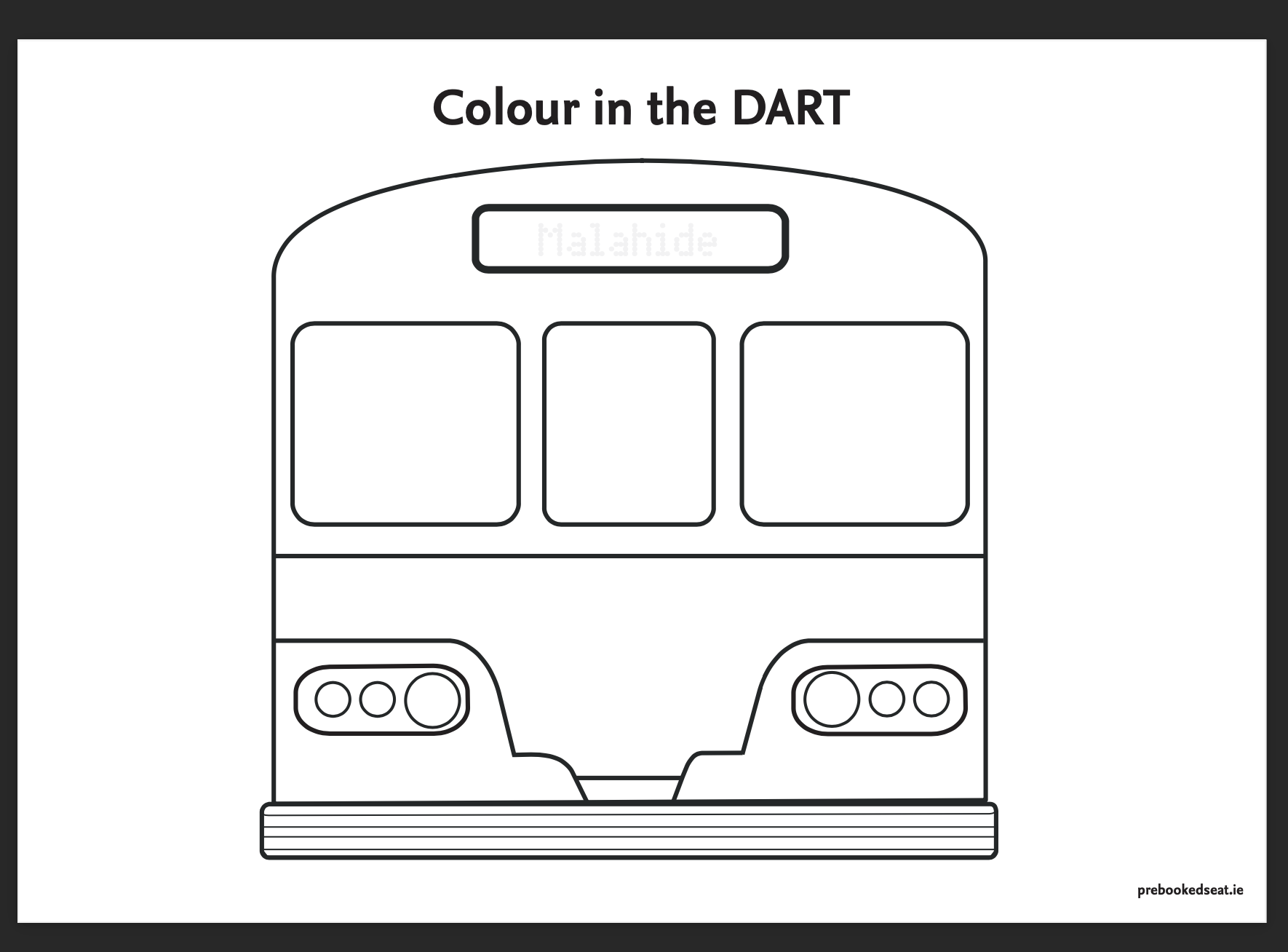 Take some time out to colour in your favourite train, the DART, featuring all of your favourite destinations; Howth, Malahide, Bray, and Greystones. This digital download bundle includes four colouring pages, one with each destination.